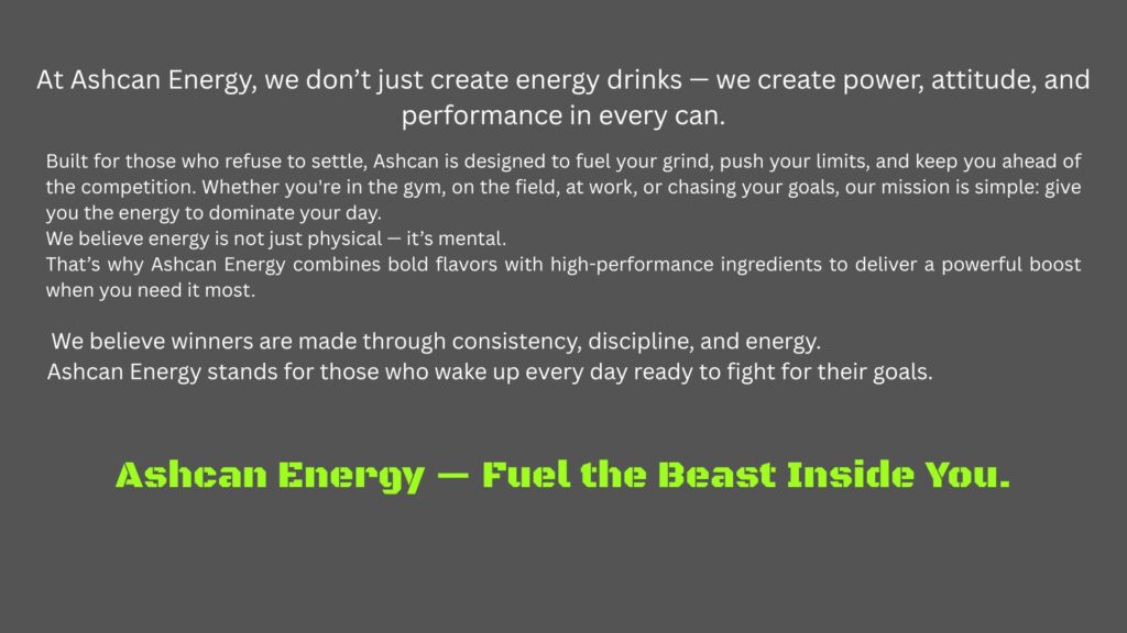 ABOUT US SOME DETAILS When the fight gets brutal, champions need real energy.ASHCAN delivers explosive power and unstoppable focusso you can push harder, fight longer, and dominate the moment.